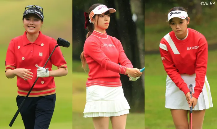雨中でも赤いウエアがしっかり映えた。今回のマイナビ ネクストヒロインツアー第10戦では特別賞としてベストドレッサー賞が用意。本来は1人が受賞…の予定だったが、中山苺衣(めい)、中島萌絵(もえ)、飯島早織の3人が同時受賞となった。『OMNIX GOLF キャディバッグ』と『みちのくコカ・コーラ オリジナルグッズ』がプレゼントされた。