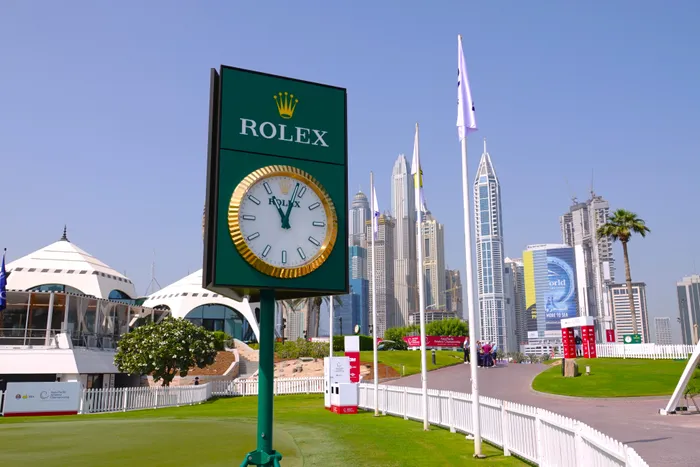 スイスの腕時計ブランド「ロレックス」は、数多くのゴルフプレーヤーや大会とパートナーシップを結び、ゴルフの発展に貢献している。灼熱の気温に負けないほど熱い戦いが繰り広げられた今大会もサポートしており、ドバイの摩天楼を背景にゴールドのベゼルが輝くクロックが大会の格式を引き立てていた。