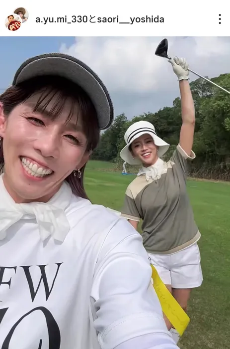楽しそうにラウンドする吉田沙保里と亜弓さん【写真:吉田沙保里のInstagram(@saori___yoshida)より】