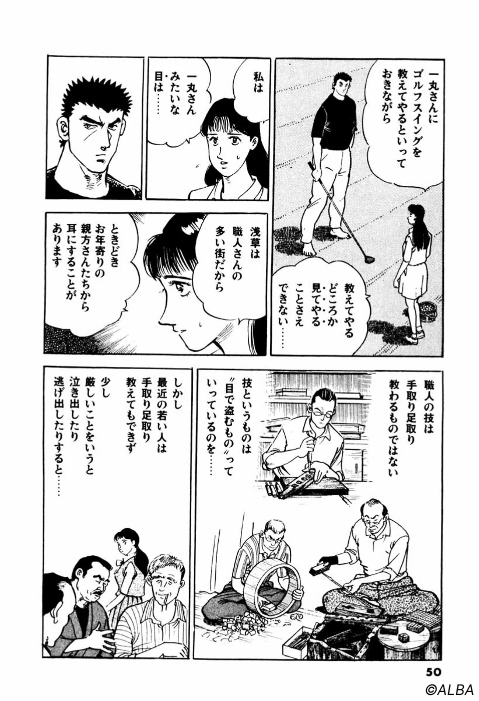 【前巻までのあらすじ】鳴海一丸は、流れの研師として東京・浅草にやって来た。ひょんなことからクラブを握った一丸は、ボールを真っ二つに割る豪快ショットを叩き出し、そのゴルフの才能を仙道桂に見込まれる。頑なにゴルフを拒む一丸だが、日本アマチャンピオンの御園からゴルフをけなすなら、まずやってみろと焚きつけられゴルフ対決をすることに。練習先でゴルフ場所属のプロ・大信田にプロの技を見せつけられた一丸の魂に火が付いた!