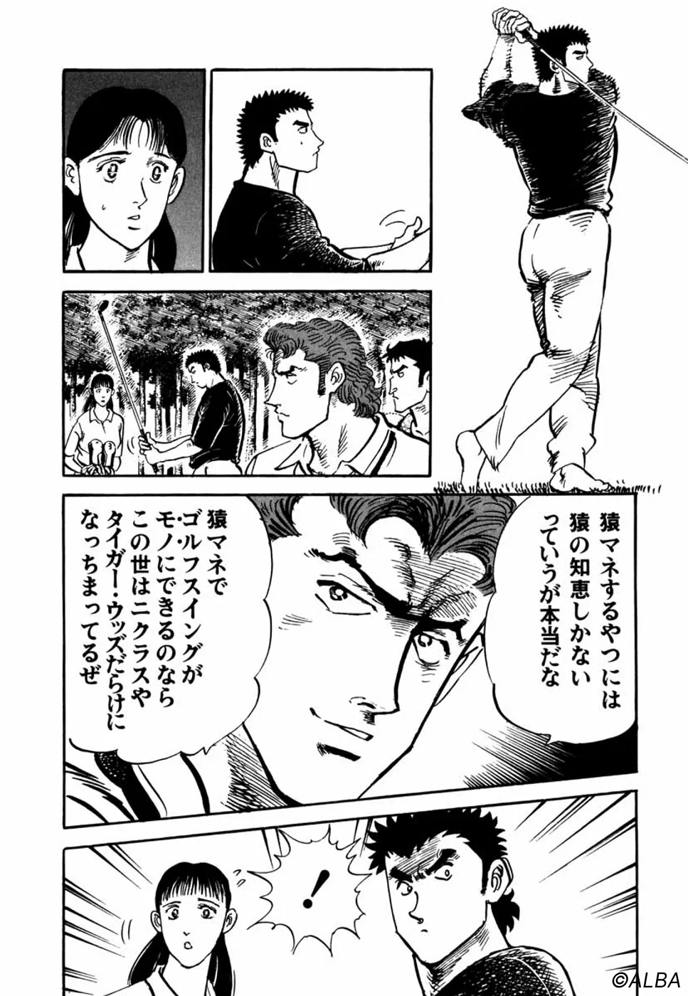 【前巻までのあらすじ】鳴海一丸は、流れの研師として東京・浅草にやって来た。ひょんなことからクラブを握った一丸は、ボールを真っ二つに割るショットを叩き出し、そのゴルフの才能を仙道桂に見込まれる。頑なにゴルフをけなし拒む一丸だが、それに腹を立てた日本アマチャンプの御園はゴルフ対決を申し込む。御園の優勢で始まった試合だが、開始早々一丸の鋭い視線に気づく。一丸は「職人の目」で御園のショットを盗み、自分のものにしていたのだ。
