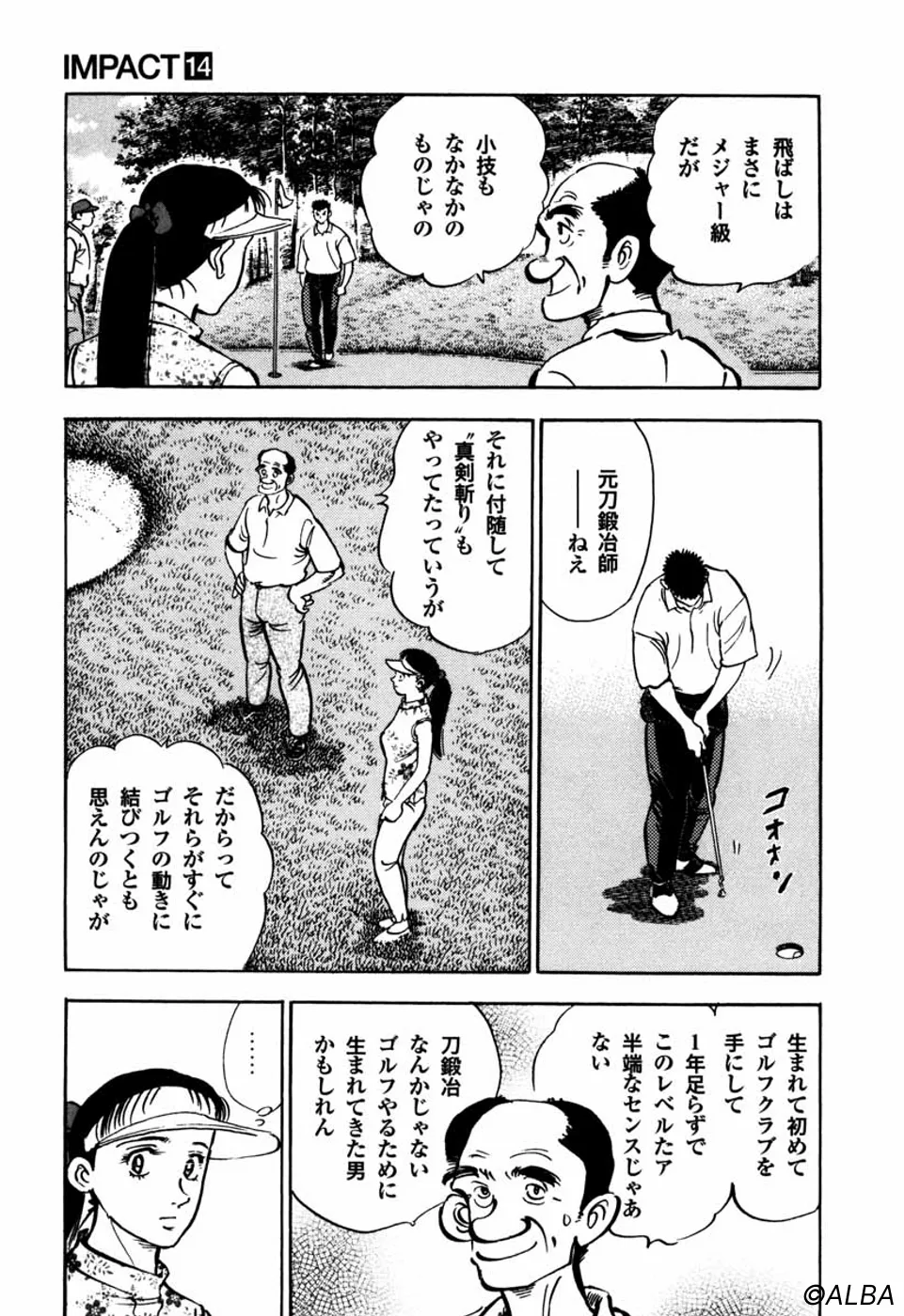【前巻までのあらすじ】浅草に来て、仙道桂に才能を見込まれ、初めてゴルフクラブを握った鳴海一丸。アマチャンピオン御園や山中プロを相手に「目でショットを盗む」職人技で、才能と勝負強さを見せつけたものの、どこかゴルフを甘く見ていたが、素人同士の石塚一平との対決でゴルフの奥深さを知り、心身を鍛え直して本格的なゴルフへの第一歩を踏み出す。そして北海道の山中の元で4カ月間ひたすらに風雪の中を歩き、ただひとつの球筋を求めて打ち続けた一丸は、やがて強風に負けない低くてまっすぐな球「プロ球」をマスターした。