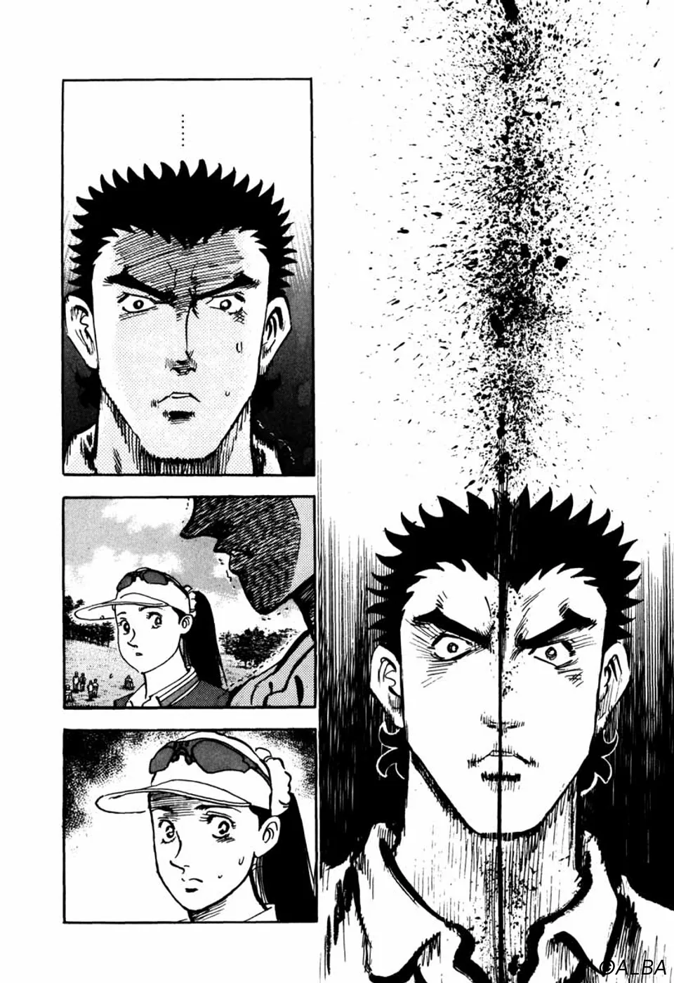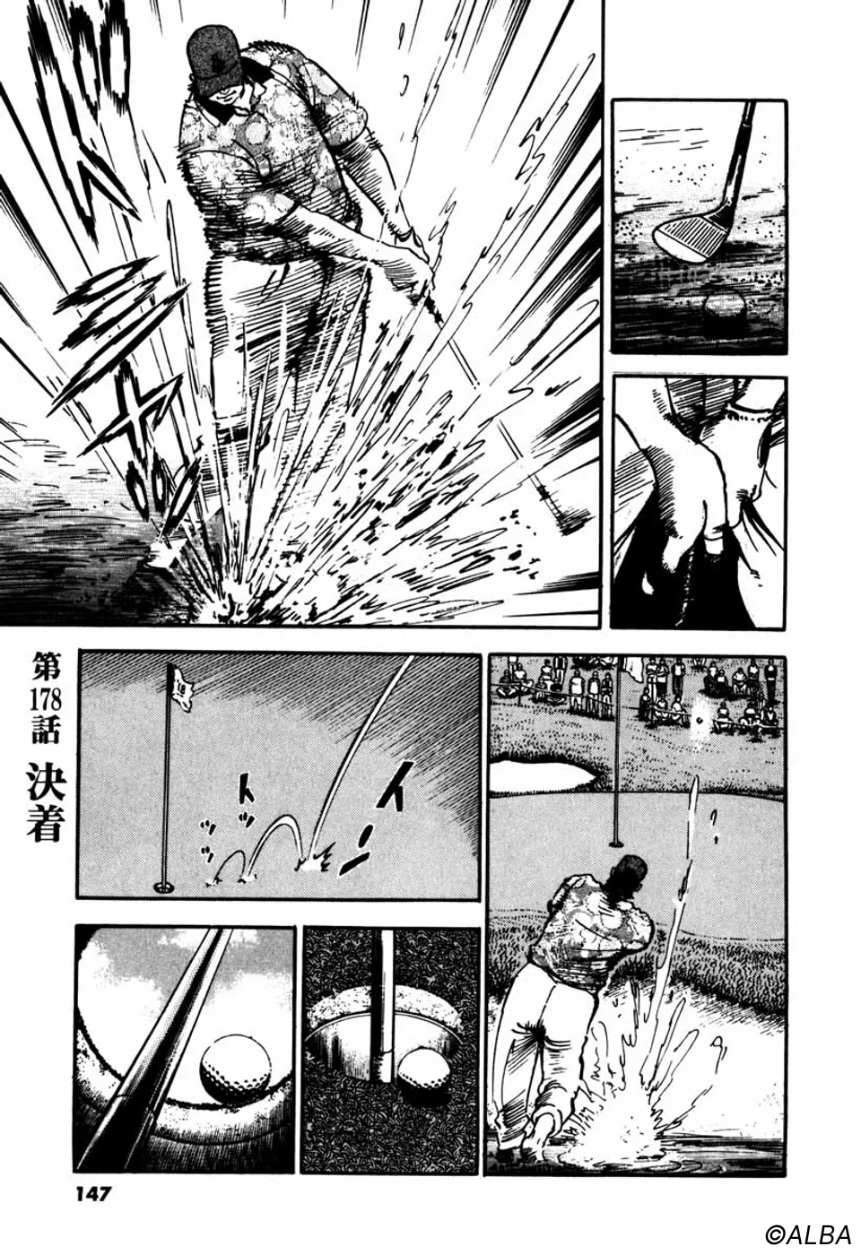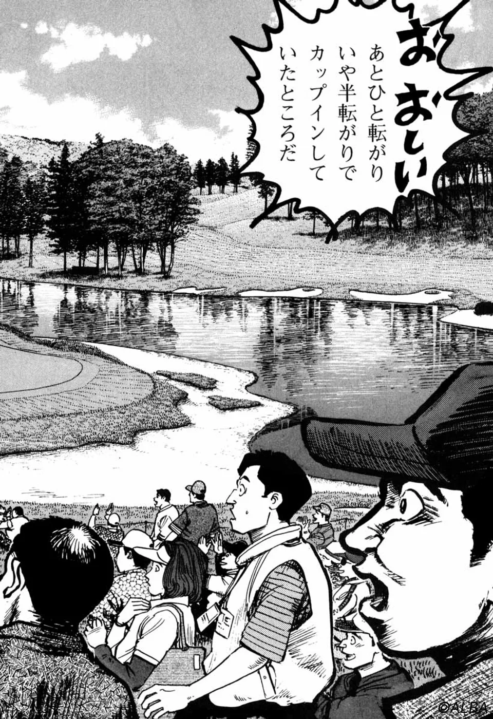 【前巻までのあらすじ】ミズオクラシック3日目、一丸はマッチプレーを仕掛けてきたジャンボ尾関から賭けを持ちかけされ、ジャンボが勝ったら一丸が刀鍛冶師時代に長年打ち込んで今なお作り上げることが出来ない古名刀の写しを作ること、一丸が勝ったらジャンボがプロゴルフ界を引退することを了承する。つまり、どちらかがゴルフをやめなくてはならないのだ。ジャンボの繰り出す「プロの技」に対し、向上心で追う一丸、互いに真剣勝負をおこなうなか、ジャンボを不審に思った桂はルール違反を犯し、試合中にご隠居に電話し、情報を求める。