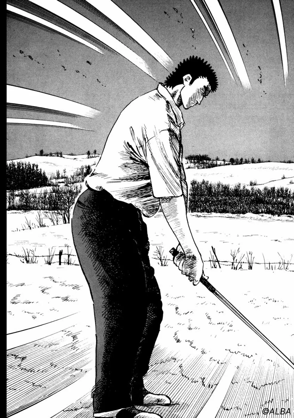 【前巻までのあらすじ】日本アマ出場の切符を巡り、関東アマの決勝が始まった。女子の部に出場した仙道桂はかろうじて日本アマへの出場を決める。一方、プロへの並外れた執着心をもつ一平と、日本アマで御園と対決することに強い決意を持つ一丸は好スタート。しかし一丸の才能に目をつけた同じ組のベテランアマゴルファー・力石が一丸に様々な方法でテクニック勝負を仕掛けてくる。今までの激戦で学んだ技術を駆使し、力石の挑発を乗り越える一丸だったが、力石の挑発はさらにエスカレートしていく。