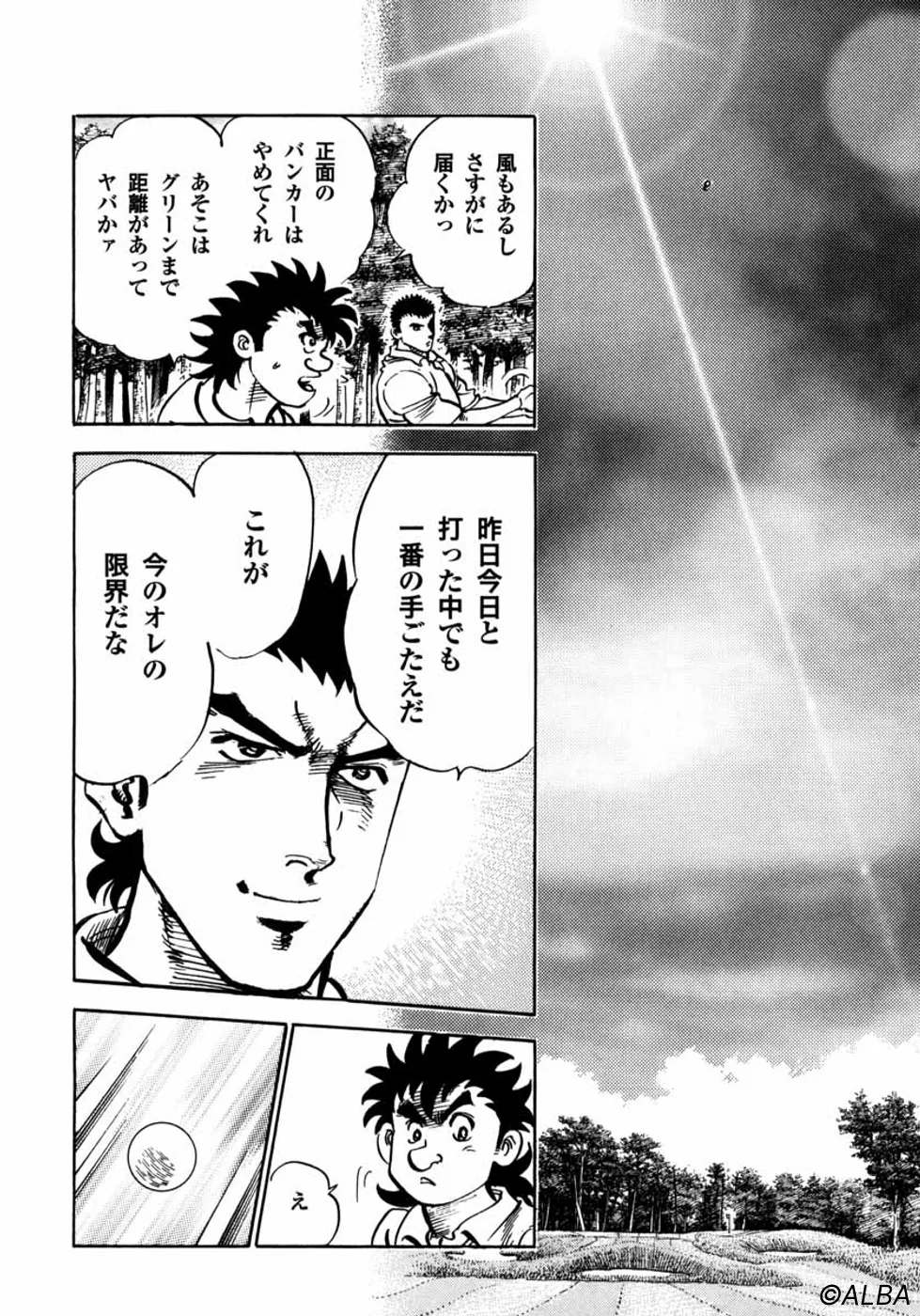 【前巻までのあらすじ】決勝マッチプレー進出に向け、スコアを縮めていきたい一丸だったが、思うようなパッティングができずにスタートダッシュに失敗する。一方、ライバルの御園は初日を練習ラウンドと割り切り、IPどおりにコースを攻めるという日本アマ本戦とは思えない余裕を見せる。そして迎えた二日目。キャディを務める一平が、前日に購入したウェッジを一丸のバッグに入れたまま、スタートしてしまうという凡ミスを犯す。まさかの4打罰を受けてしまった一丸は、決勝ラウンド進出が一気に遠ざかってしまったのだった。