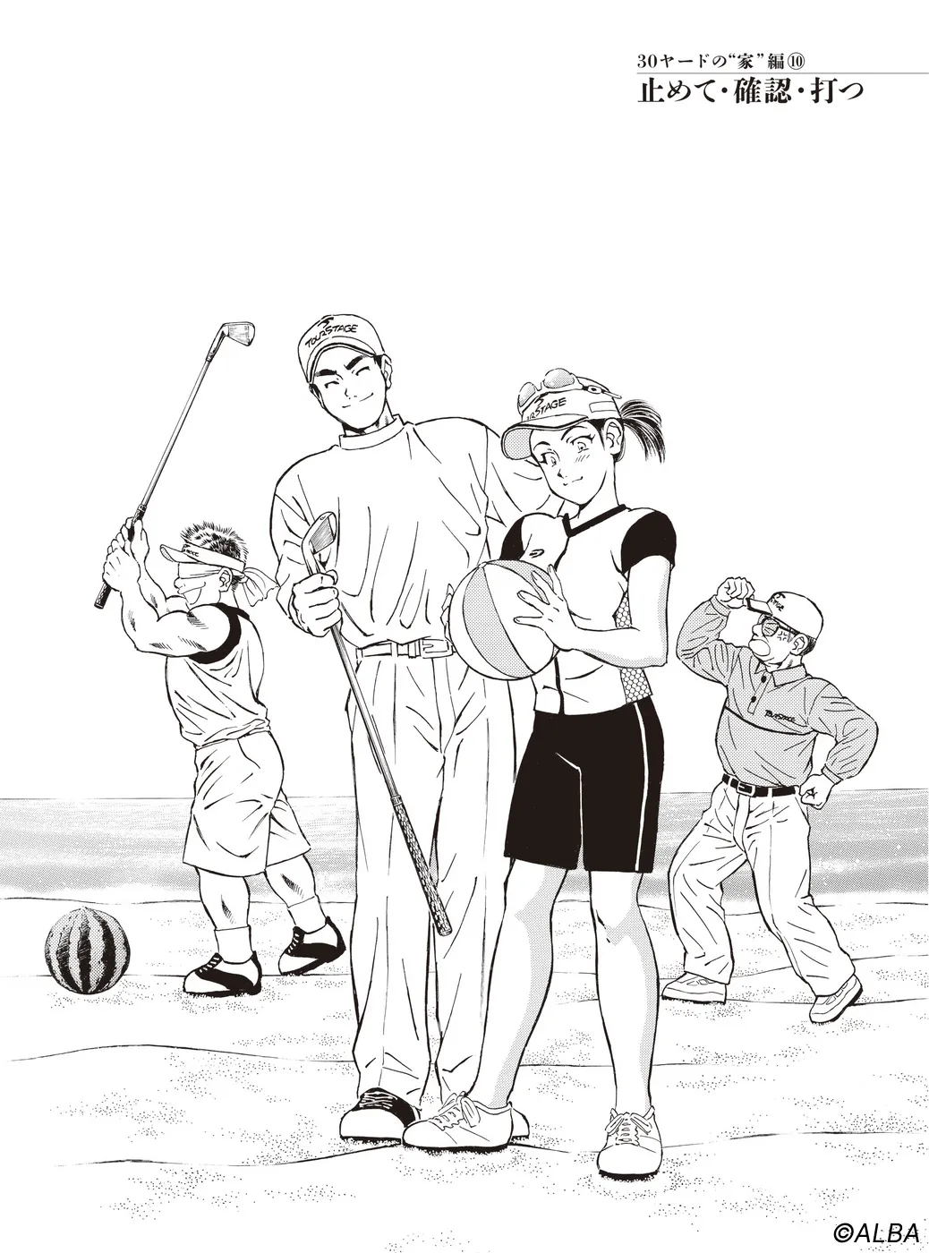 【30ヤードの“家”編 シリーズ概要】「どうしても上手くなりたい」と懇願してきたのは、会社の先輩から“万年100叩きのいつも百太郎”と揶揄される逸茂尺太郎(いつも しゃくたろう)。周りを見返したい思いをもって、宮里流の門戸をくぐった百太郎は、自分自身の“家”を完成させることができるのか…?(指導:宮里優/脚本:かわさき健/作画:本島幸久)