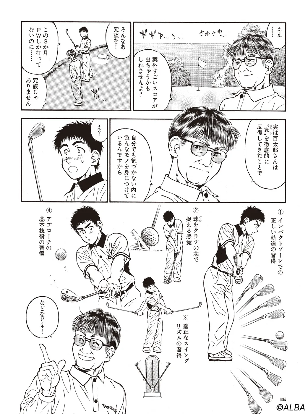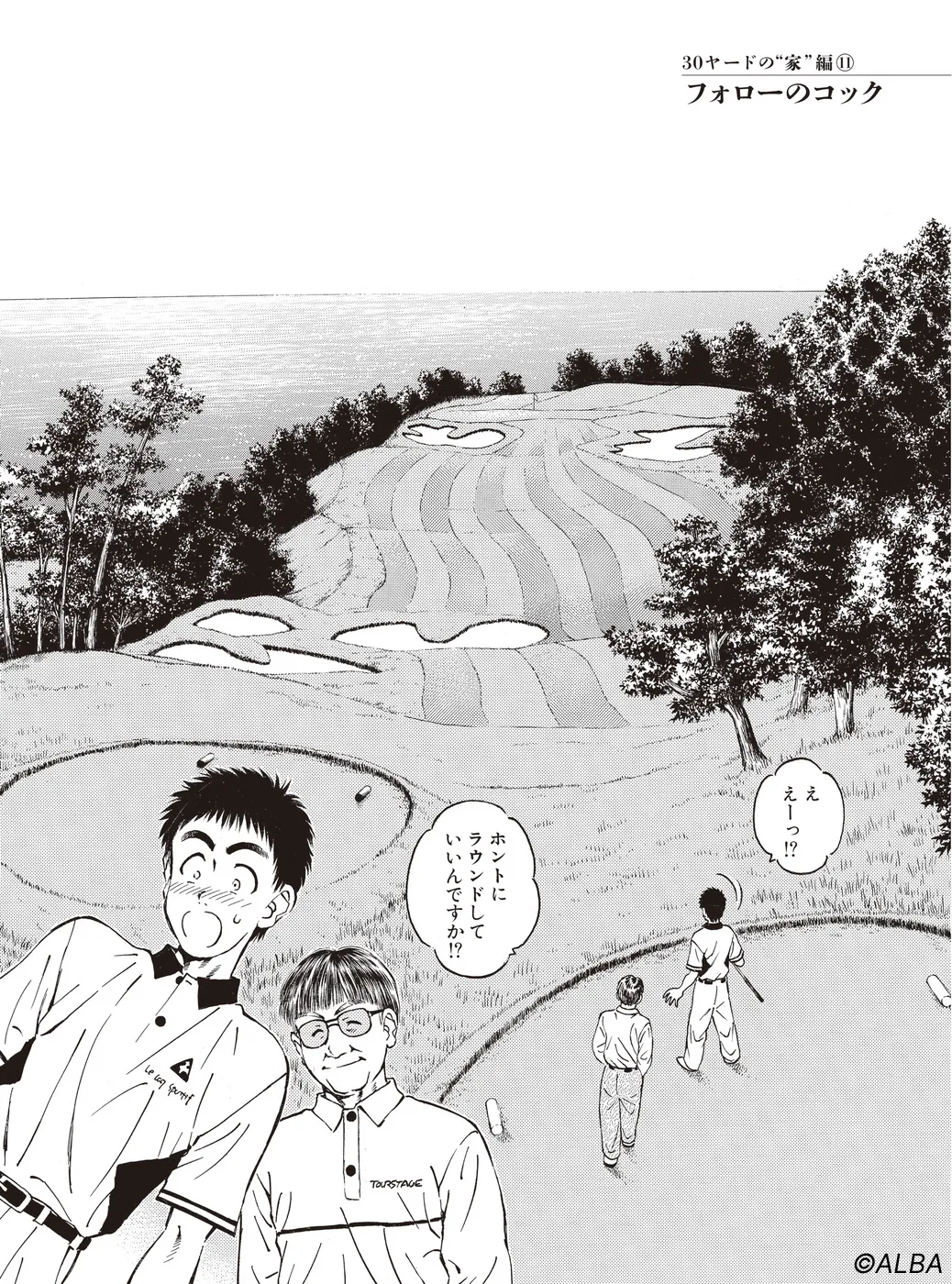 【30ヤードの“家”編 シリーズ概要】「どうしても上手くなりたい」と懇願してきたのは、会社の先輩から“万年100叩きのいつも百太郎”と揶揄される逸茂尺太郎(いつも しゃくたろう)。周りを見返したい思いをもって、宮里流の門戸をくぐった百太郎は、自分自身の“家”を完成させることができるのか…?(指導:宮里優/脚本:かわさき健/作画:本島幸久)