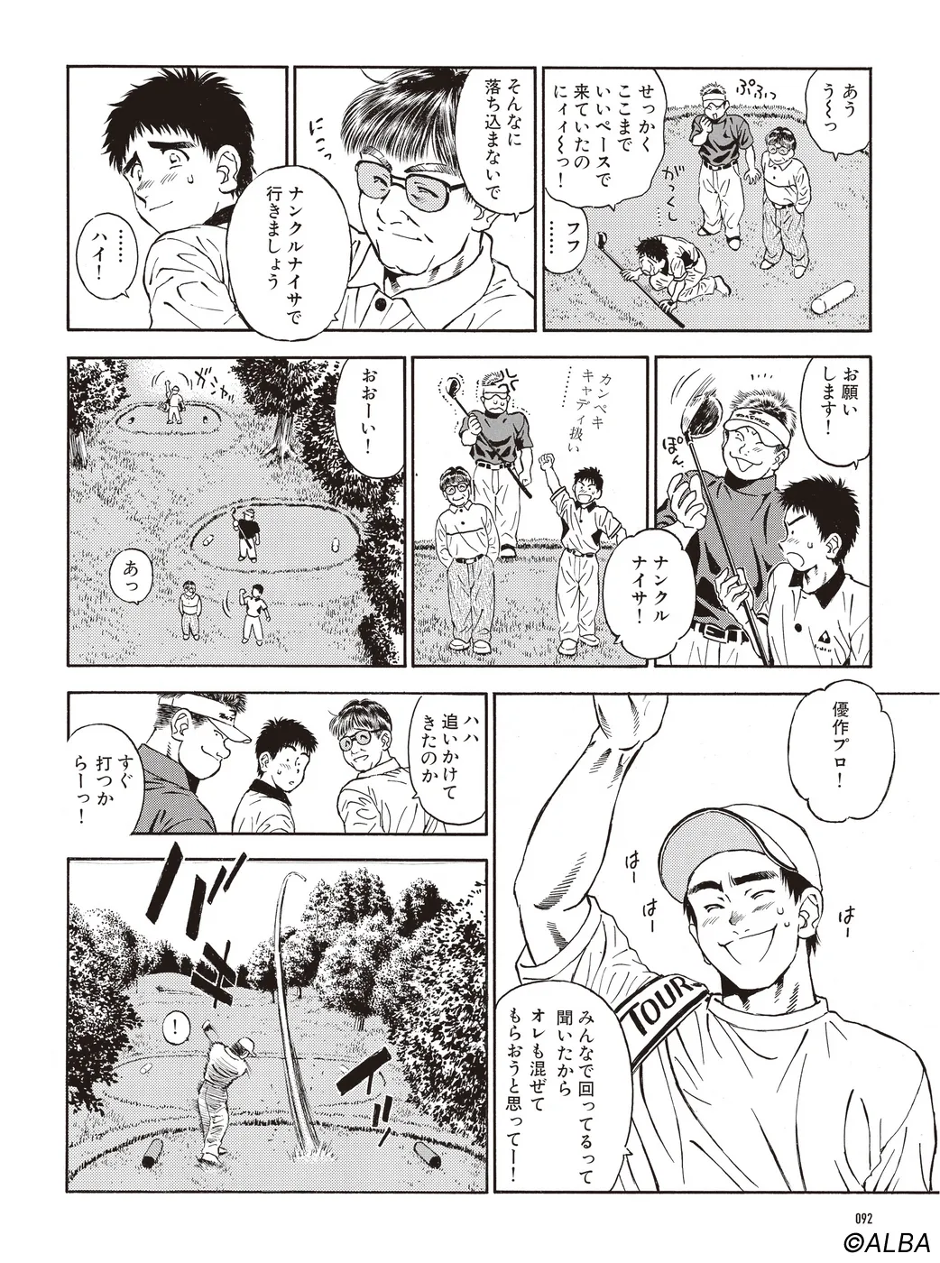 【30ヤードの“家”編 シリーズ概要】「どうしても上手くなりたい」と懇願してきたのは、会社の先輩から“万年100叩きのいつも百太郎”と揶揄される逸茂尺太郎(いつも しゃくたろう)。周りを見返したい思いをもって、宮里流の門戸をくぐった百太郎は、自分自身の“家”を完成させることができるのか…?(指導:宮里優/脚本:かわさき健/作画:本島幸久)