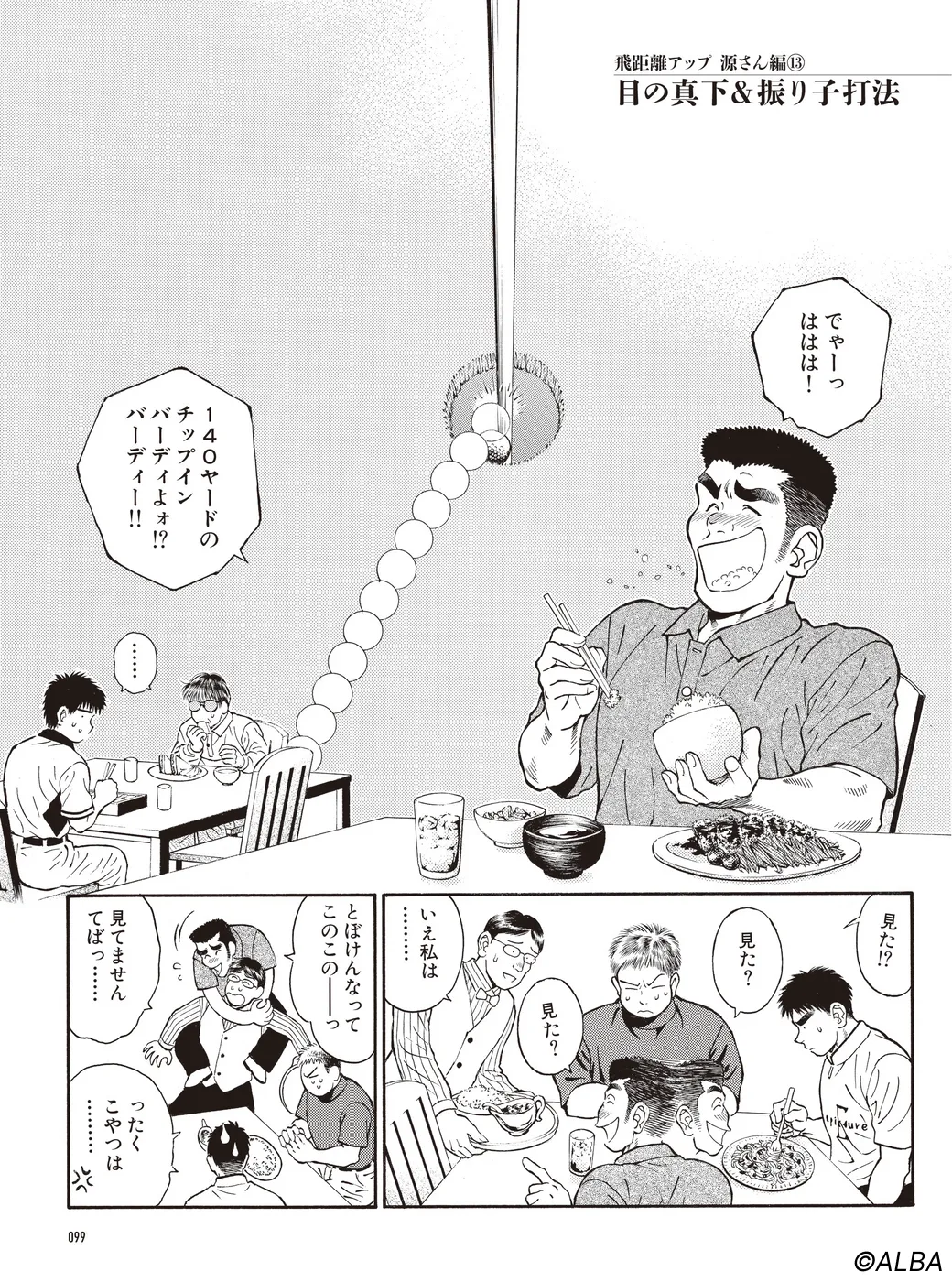 漫画レッスン 宮里道場【飛距離アップ 源さん編】第13話|目の真下&振り子打法