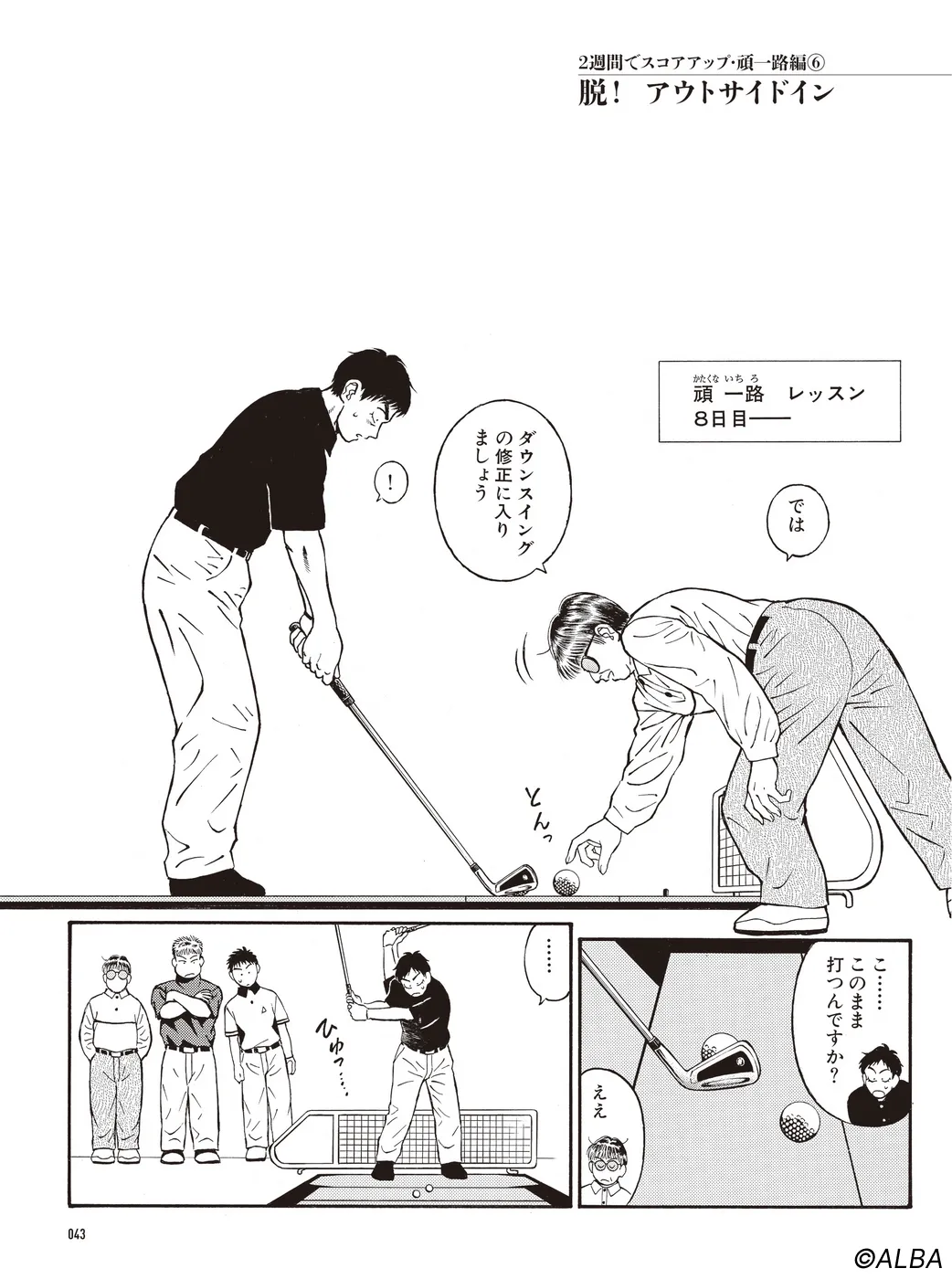 【2週間でスコアアップ 頑一路編|シリーズ概要】目前に迫った社内コンペで結果を出すために、宮里流の指導を受けるべく、はるばる東京からやってきた頑一路(かたくな いちろ)。限られた2週間という期間のなかで、宮里流の真髄を体得することができるのか…。(指導:宮里優/脚本:かわさき健/作画:本島幸久)