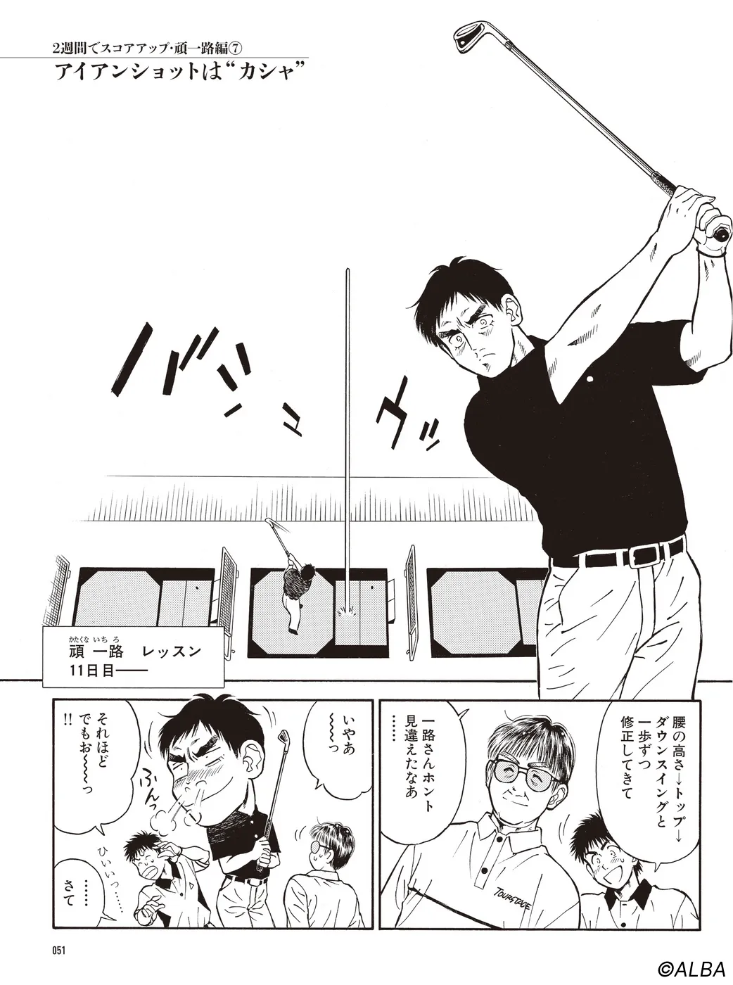 【2週間でスコアアップ 頑一路編|シリーズ概要】目前に迫った社内コンペで結果を出すために、宮里流の指導を受けるべく、はるばる東京からやってきた頑一路(かたくな いちろ)。限られた2週間という期間のなかで、宮里流の真髄を体得することができるのか…。(指導:宮里優/脚本:かわさき健/作画:本島幸久)
