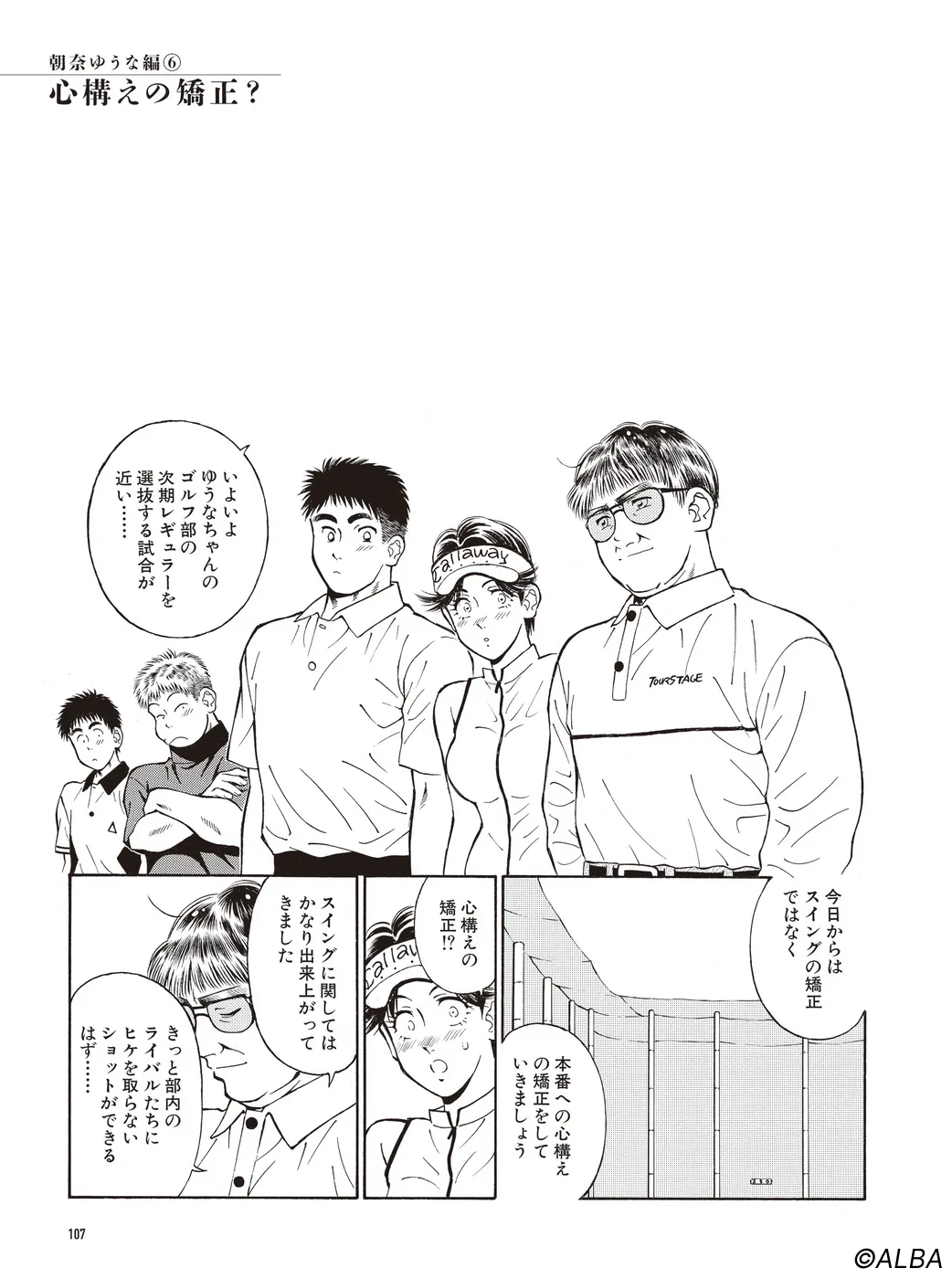 【朝奈ゆうな編|シリーズ概要】大学ゴルフ部のレギュラー入りを目指し、宮里道場へと訪れた朝奈ゆうな。上達したいという純粋で真っすぐな気持ちと、大ファンであった優作からの的確な指導で、自らの殻を破っていく…。(指導:宮里優/脚本:かわさき健/作画:本島幸久)