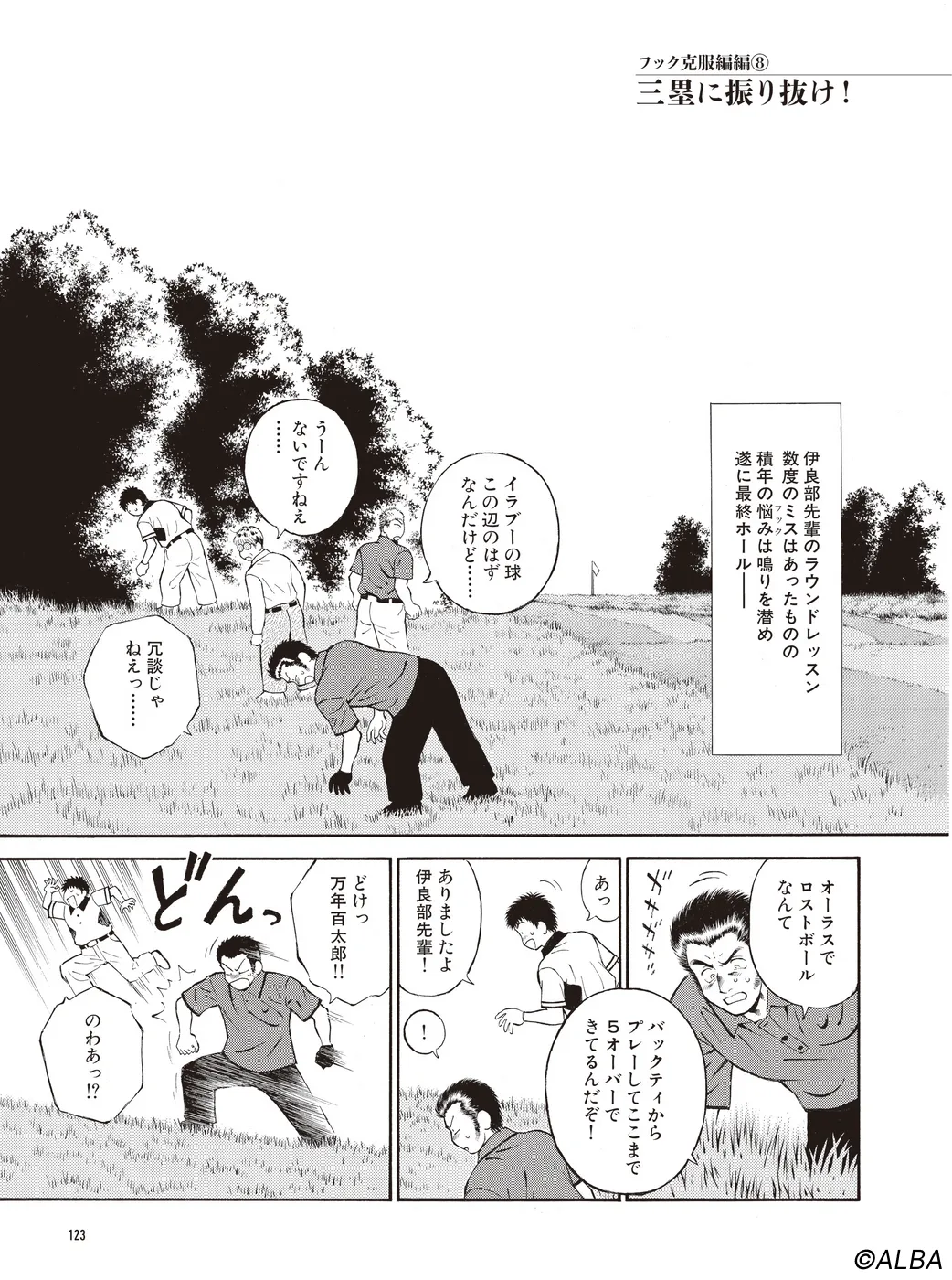 【フック克服編|シリーズ概要】格下扱いしてきた後輩・百太郎にスクラッチ勝負で敗れてしまったシングルゴルファーの伊良部(いらぶ)。百太郎の急成長の秘密を探るべく宮里道場へ偵察に赴くが、宮里優に自身のゴルフの課題を見透かされてしまう。積年の悩み・フックを克服するため、宮里流の指導を受けることに…。(指導:宮里優/脚本:かわさき健/作画:本島幸久)