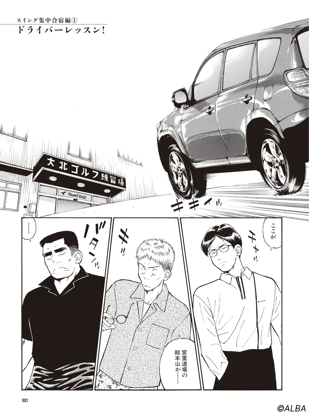 【スイング集中合宿編|シリーズ概要】宮里道場の生徒募集で集まってきた山手泉(いずみ)、通天覚(さとし)、阿蘇賛(さん)。100の壁、90の壁、80の壁…課題が異なる三人の悩めるゴルファーに対し、レベル別ドライバースキルアップレッスンが始まる…。(指導:宮里優/脚本:かわさき健/作画:本島幸久)