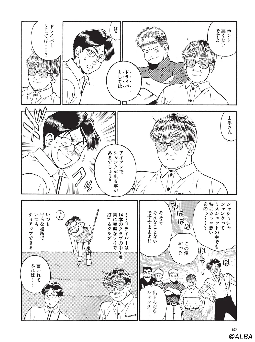 【スイング集中合宿編|シリーズ概要】宮里道場の生徒募集で集まってきた山手泉(いずみ)、通天覚(さとし)、阿蘇賛(さん)。100の壁、90の壁、80の壁…課題が異なる三人の悩めるゴルファーに対し、レベル別ドライバースキルアップレッスンが始まる…。(指導:宮里優/脚本:かわさき健/作画:本島幸久)