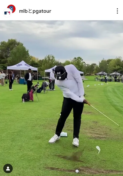 MLB(メジャーリーグ)とPGA(米国男子ツアー)が公式インスタグラムを同時に更新。「キャピタルワンMLBオープン」のプロアマに参加するために練習していた現役メジャーリーガーに起きたハプニングを動画で投稿した。