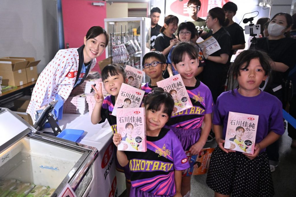 また、石川さん自身も全農ブースを訪問し、子どもたちと交流。「石川佳純カレー」を手渡しで販売するなど、ブースを大いに盛り上げた。