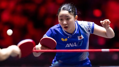 また、早田ひな(日本生命)は世界ランキング1位の孫穎莎(スンイーシャ・中国)と対戦。第1ゲームから地力の強さを見せた孫が一気に2ゲームを連取するも、競り合いとなった第3ゲームを早田が奪い、そのままの流れで2ゲームを取り返す。