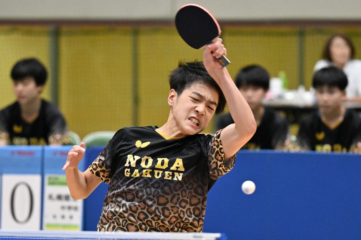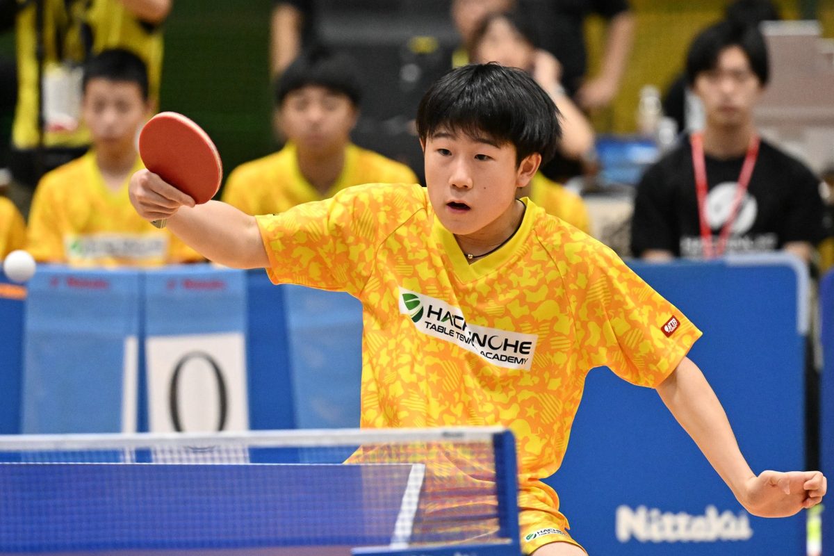 男子団体第2ステージ1回戦では、2年ぶりの王座奪還を狙う愛工大名電(愛知)が城南(石川)と対戦。愛工大名電は城南のエース・平塚健友とダブルスに2本を奪われるも、山崎真寛、浅里巧真、立川凜の3人がともにフルゲームを制す活躍を見せ、マッチカウント3-2で勝利した。